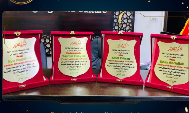 في أجواء مميزة يسودها التقدير والامتنان، قام هير عمرو الشاعر، مدير أكاديمية أركادا بيت اللغة والثقافة، بتكريم نخبة من مدربي اللغات في الأكاديمية تقديرًا لجهودهم الكبيرة ودورهم الفعّال في تطوير العملية التعليمية. جاء هذا التكريم تأكيدًا على حرص الأكاديمية الدائم على دعم مدربيها وتشجيعهم على مواصلة العطاء والتميز.