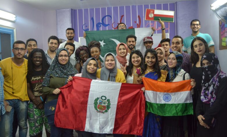 في رحاب الثقافة تجتمع لوحة إنسانية نابضة بالحياة، تروي دون كلمات قصة جمال التنوع وروعة الاختلاف. تمثل هذه الصورة نموذجًا مصغرًا لعالمنا، حيث تلتقي الجنسيات والثقافات تحت سقف واحد، هو سقف الثقافة والفن